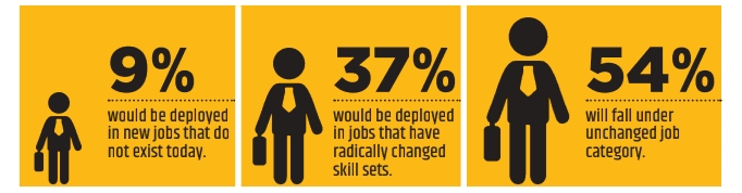 - 37% would be deployed in jobs that have radically changed skill sets.
