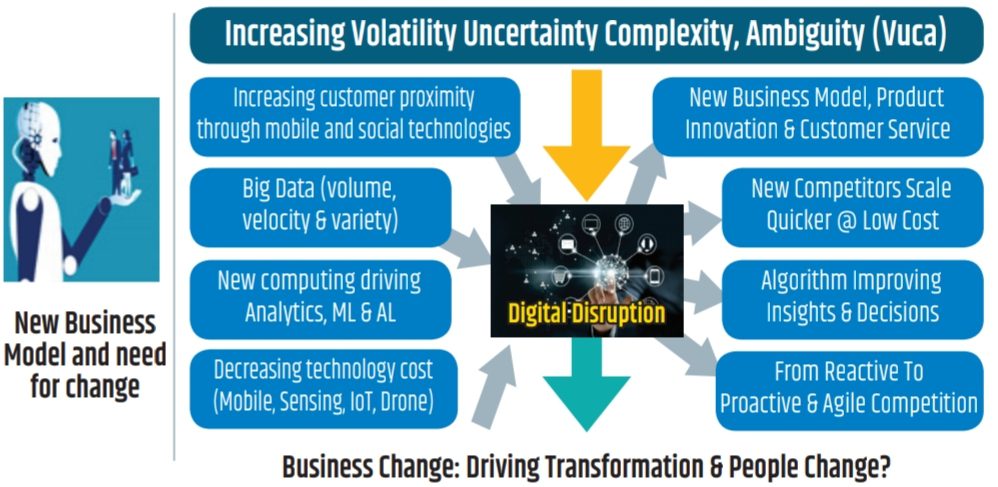 As we know today, no industry is immune and we’re in a time when there’s more data than ever before, and new types of technology and increased computational capacity are available and cheaper than ever before. These factors create the perfect storm for companies to unlock new products, internal operations, and ways of serving their customers. The availability of change management models and needed skills to meet these new challenges is on the minds of CEOs and senior leaders of enterprises large and small, across all geographies. This model can be a great use to the CEO/CXO and HR manager to manage digital disruption in a more effective way to manage human aspects to ensure adoption and building skills and workforce for the future.