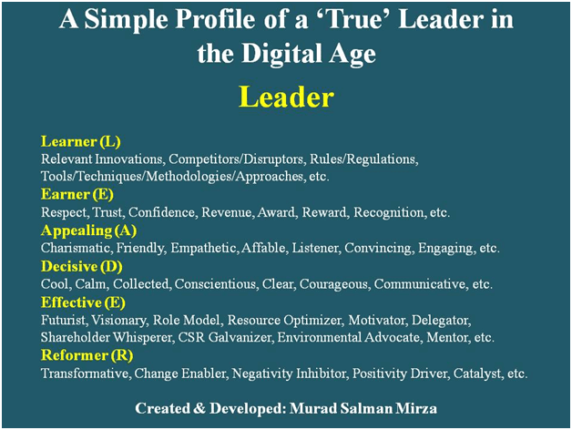 So, what are the key traits of a ‘true’ leader in the Digital Age? Let’s breakdown the word ‘LEADER’ into its constituent elements and then synthesize the segregated parts in a particular context to gain a clear and insightful understanding of the desired merits: