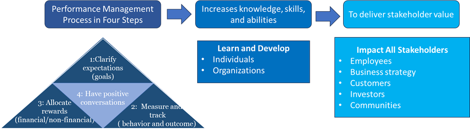 We suggest a logic of managing four steps in the performance management process to improve learning and development for individuals and organizations that leads to stakeholder value (Figure 2) This overly simplified logic begins with the four steps of the performance management process.