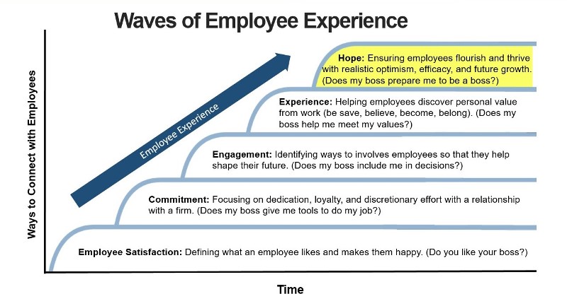 We have seen five waves of enhancing employee experience of both in person and virtual employees (see figure).